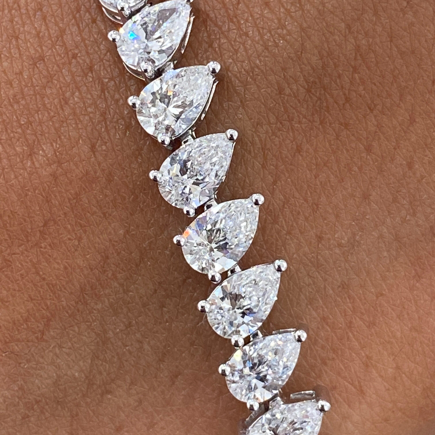 Îmbină eleganța clasică cu un design rafinat prin această brățară tennis deosebită, realizată din argint placat cu platina și încrustată cu moissanite de 0,5 carate fiecare, în tăietura para. Fiecare piatră, cu forma sa delicată, reflectă o strălucire magnifică datorită tăieturii para și a calității superioare a moissanitelor.