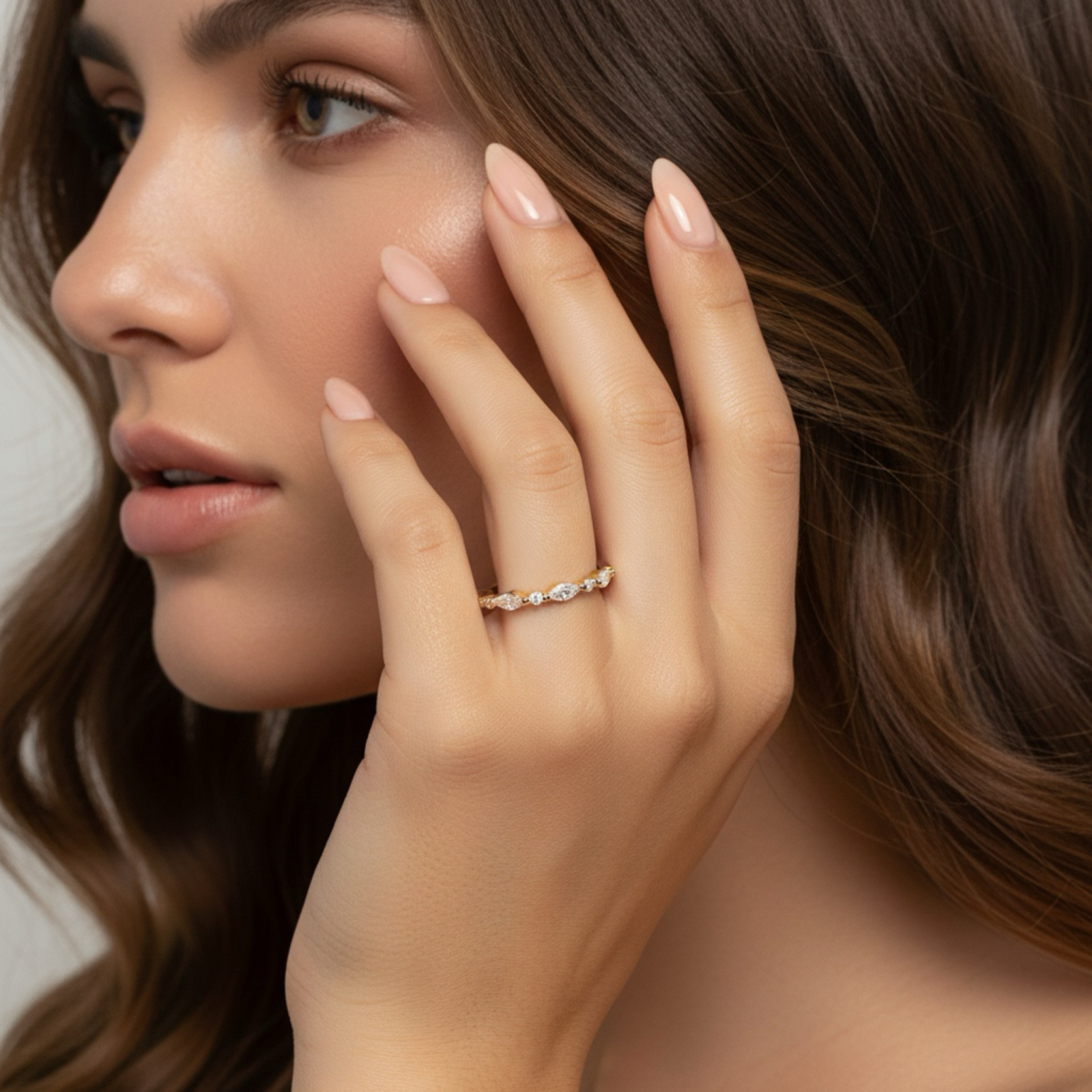 - Montură semieternity — perfectă pentru purtare zilnică sau pentru a completa un inel de logodnă