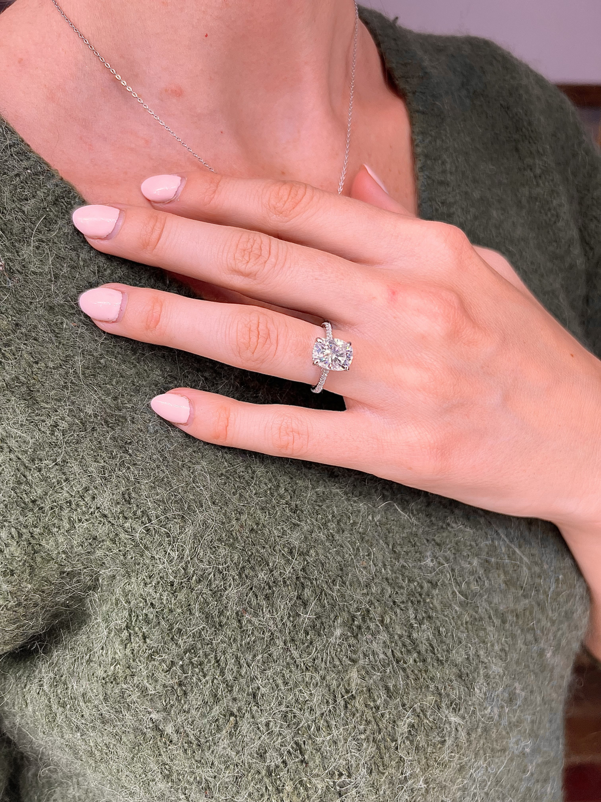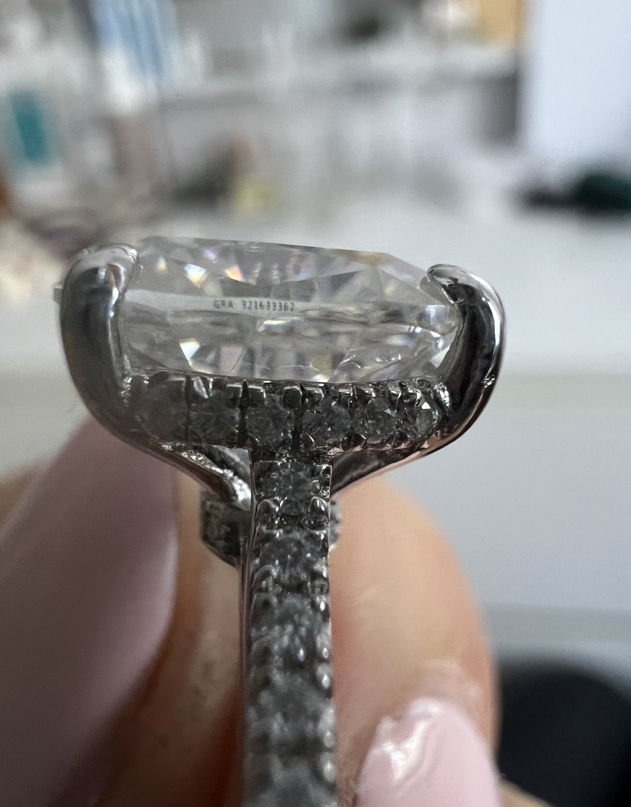 Am asteptat putin dupa el pentru ca marimea mea nu mai era pe stoc, din cate am inteles e un model destul de cerut si marimile se termina repede insa dupa 2 sapt. a ajuns si wow, e absolut minunat! Se vede diferenta chiar si la pietrele alea mici ca sunt moissanite si ele. Ceea ce nu am vazut la alte magazine care au inele cu moissanite doar piatra principala. La voi sta altfel treaba si pentru asta va apreciez f mult. Sunteti f profi.:)