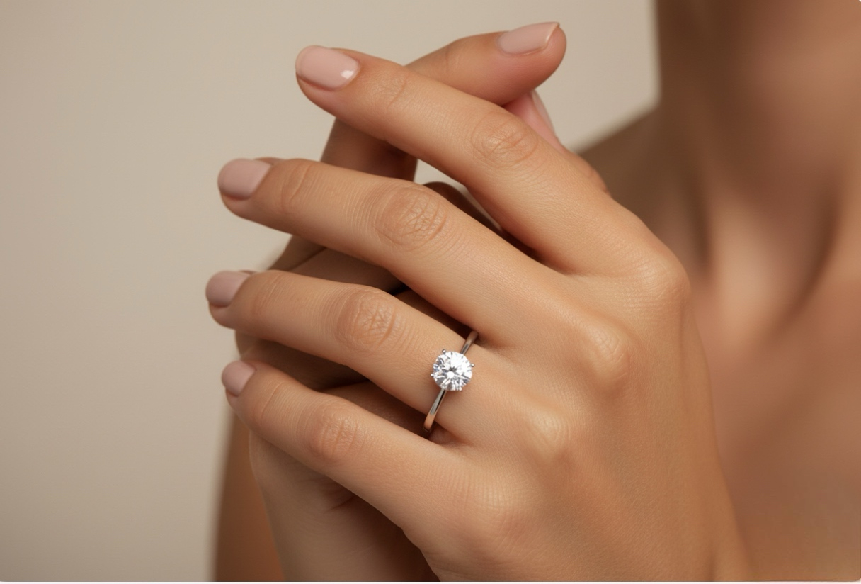• Piatra principală: moissanite rotund briliant de 1 CT