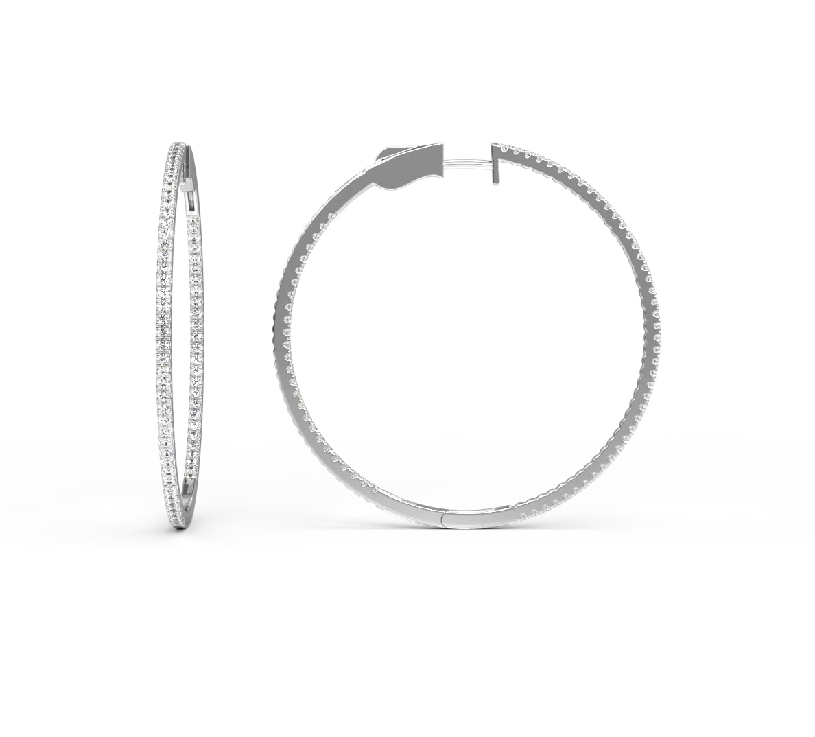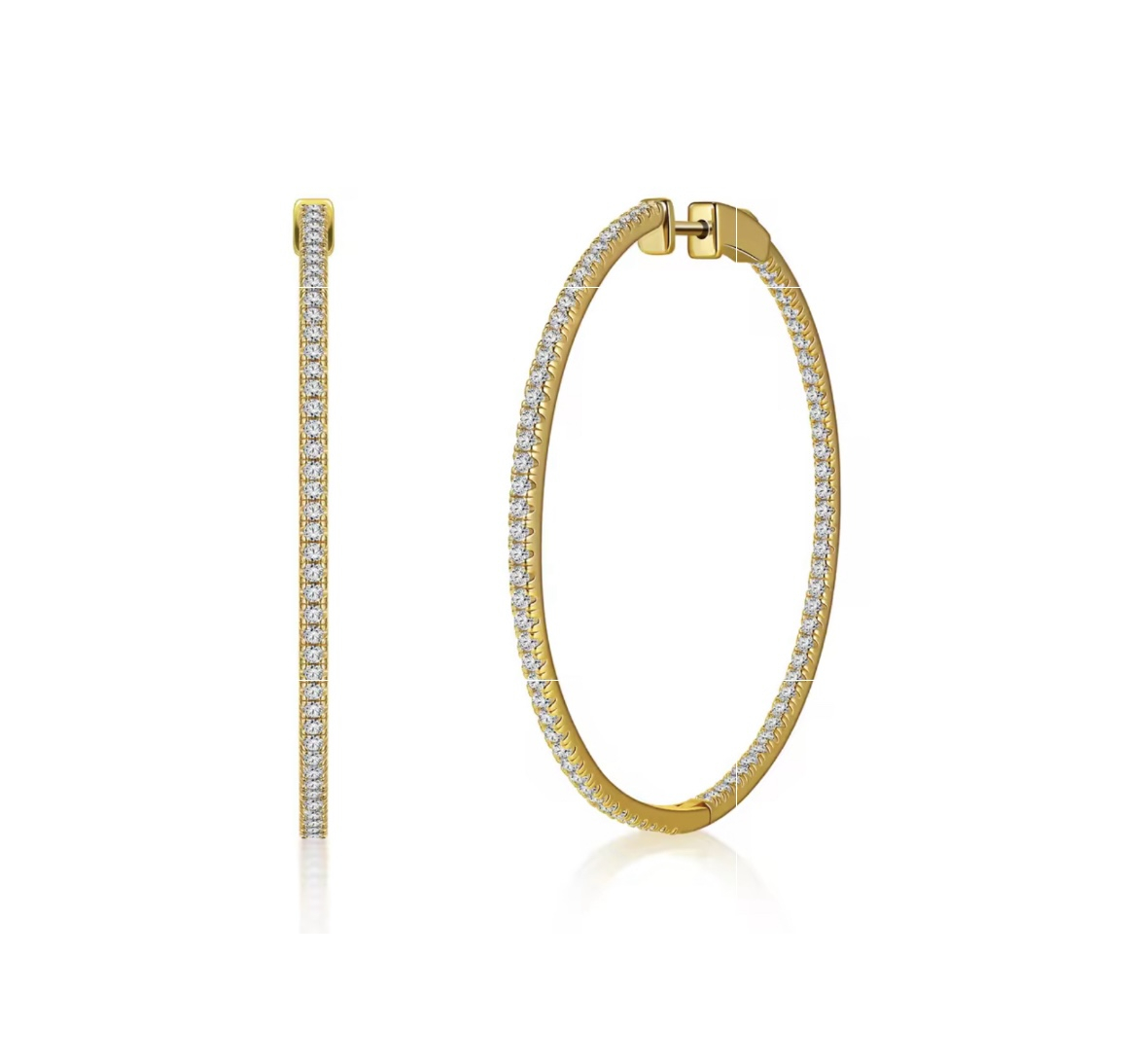 Acești cercei rotunzi statement sunt realizați din argint 925, placat cu platină/ aur galben pentru un finisaj strălucitor și rezistență sporită la uzură. Împodobiți cu moissanite de culoare D și claritate VVS, în total 2,34 carate, oferă o strălucire excepțională, comparabilă cu cea a diamantelor.