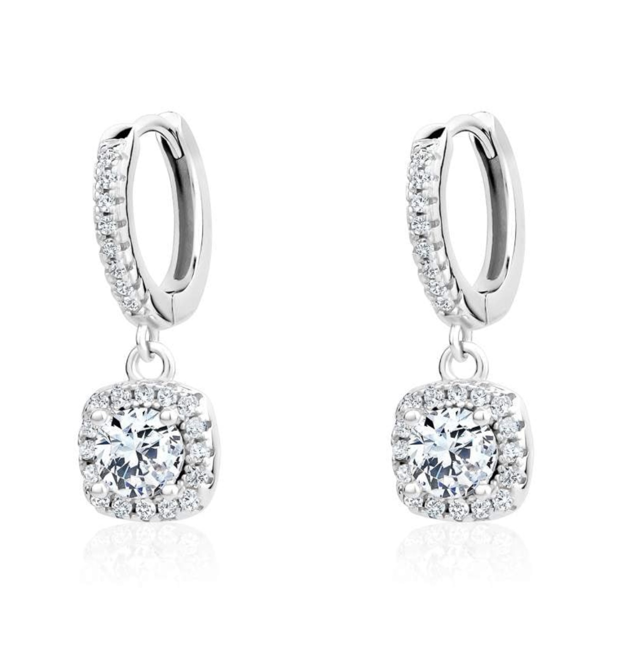 Un echilibru perfect între clasic și modern. Acești cercei uimitori sunt decorați cu moissanite de 0,5/1 carat fiecare, în tăietură rotundă briliantă, de culoare D și claritate VVS1. Piatra centrală este montată în patru gheare și înconjurată de un halo discret pătrat, care adaugă un contrast rafinat și un plus de strălucire.