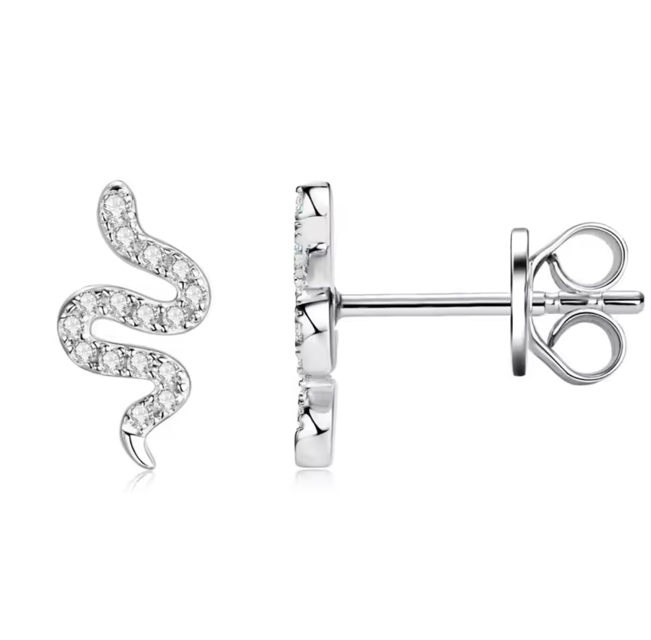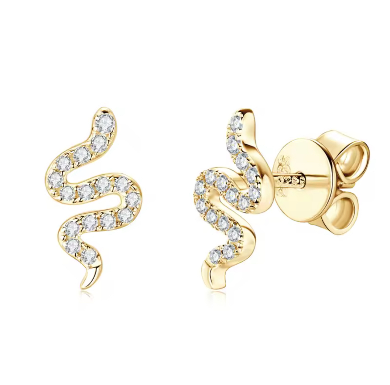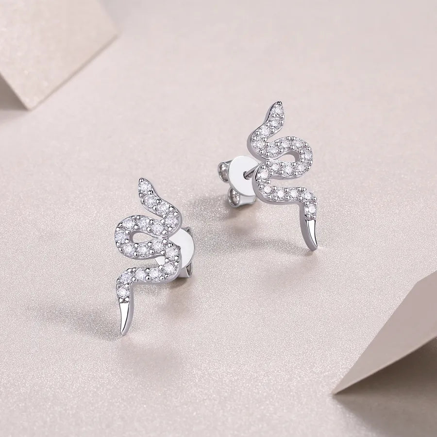 Cerceii Serpent Sparkle aduc un strop de mister și eleganță fiecărei apariții. Realizați din argint fin, placat cu platină sau aur galben pentru un plus de rafinament, acești cercei în formă de șarpe sunt încrustați cu moissanite strălucitoare, de culoare D și claritate VVS, cu un total de 0,14 carate.