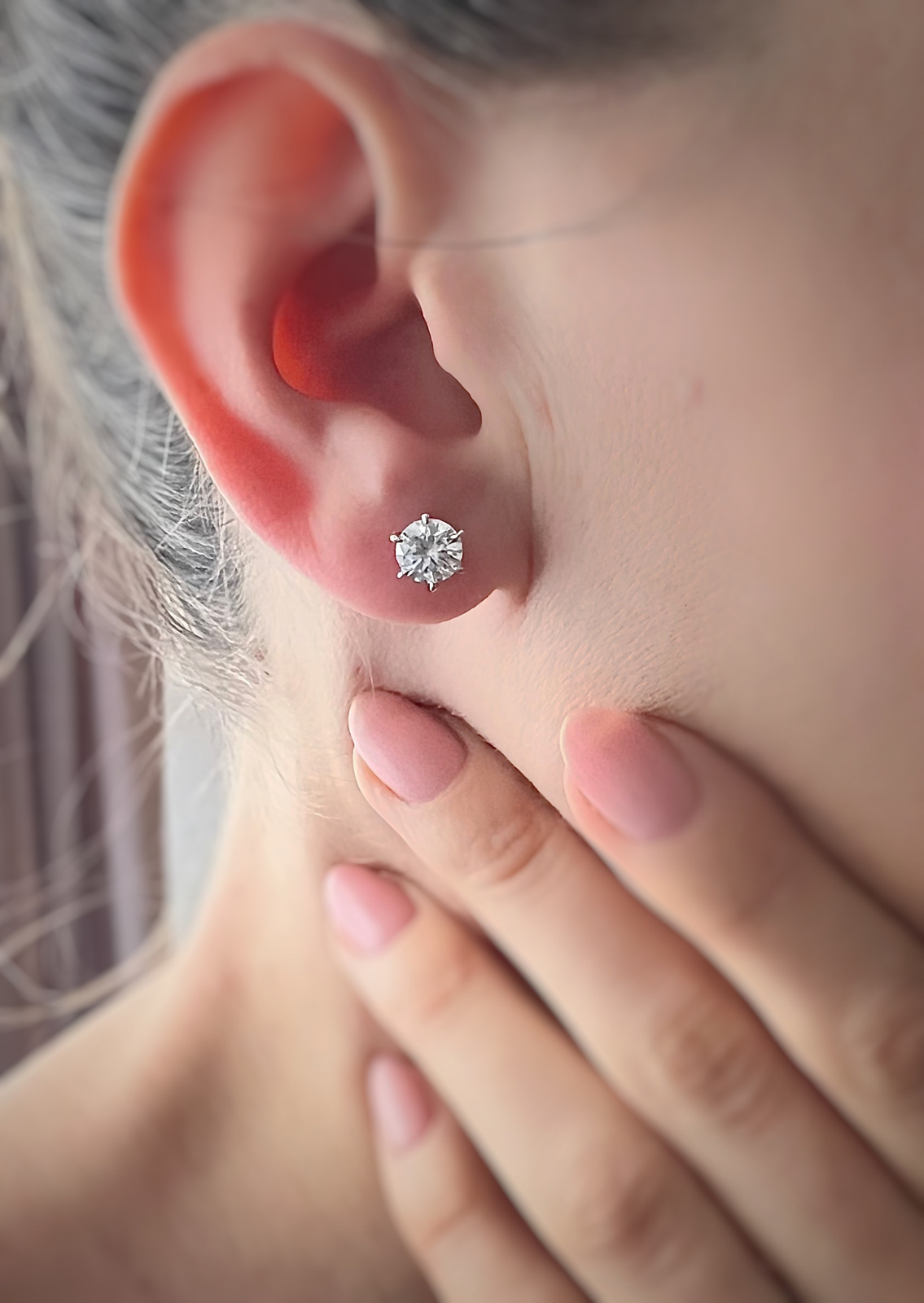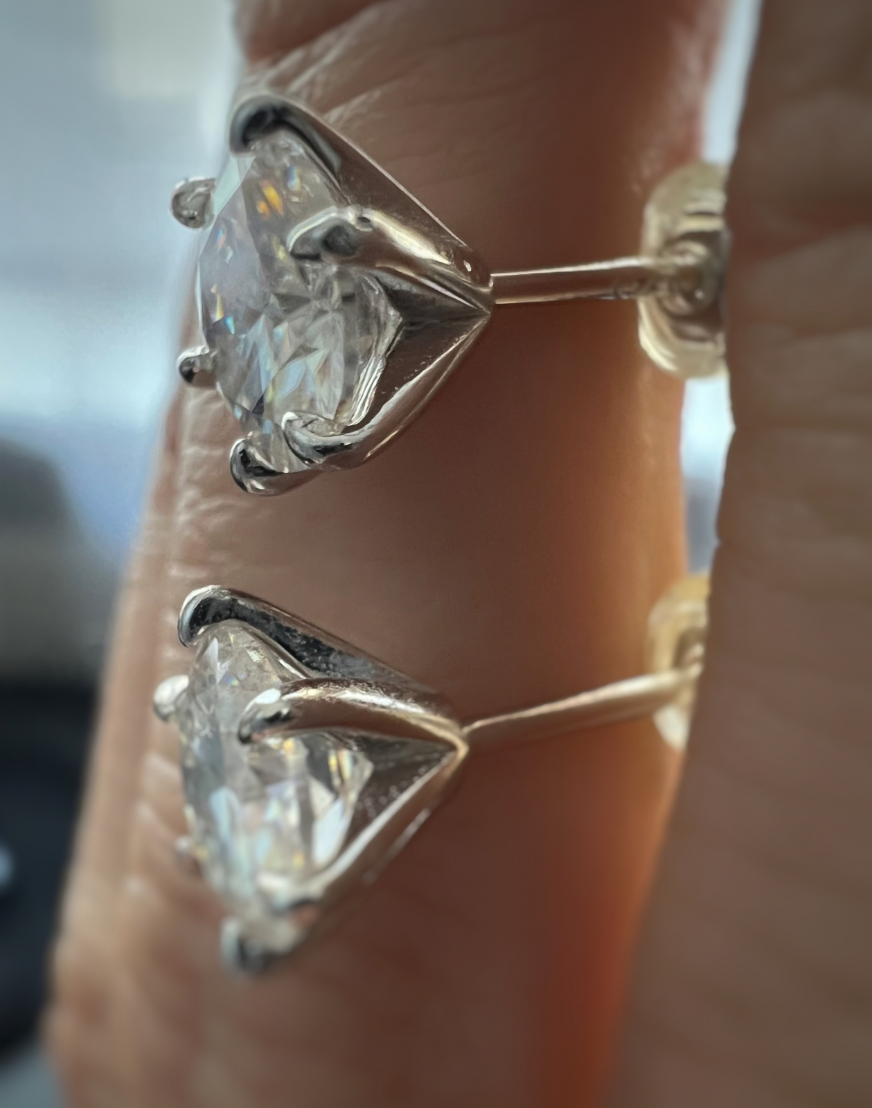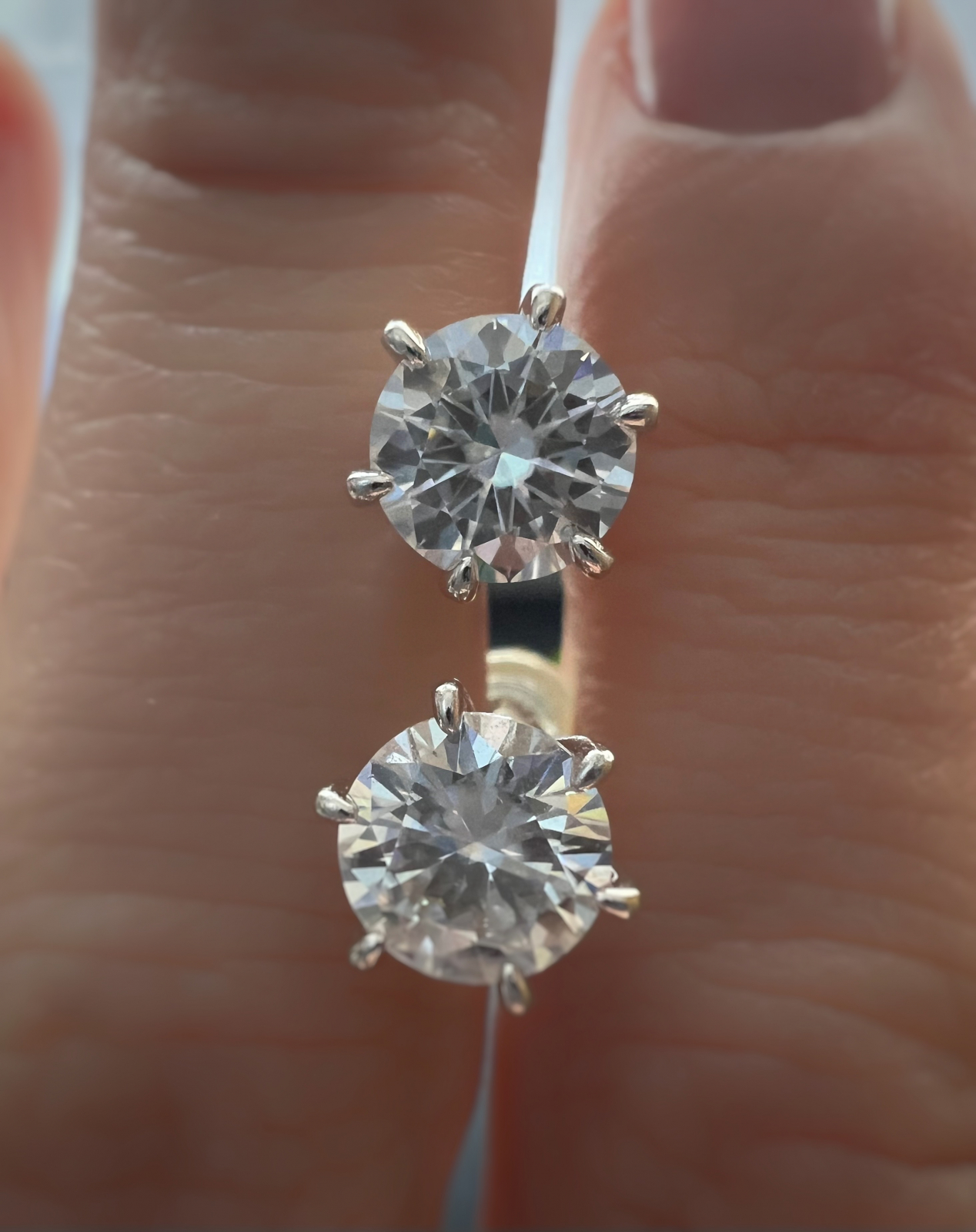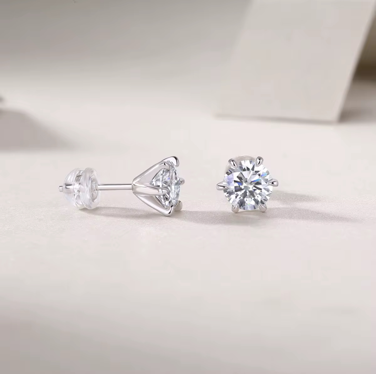 - Pietre: Moissanite solitaire de 0,5 carate (0,5CTx2) sau de 1 carat (1CTx2) cu tăietura rotundă briliantă, culoare D si claritate VVS1