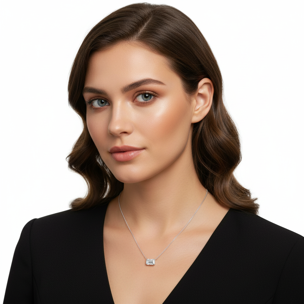 Rafinat și elegant, acest colier din aur este în centrul atenției prin pandantivul său cu moissanite tăietură emerald de 1 carat – o piatră impresionantă, cu o claritate excepțională VVS și culoare D, ce reflectă lumina într-un mod sofisticat. Tăietura emerald scoate în evidență transparența și eleganța pietrei, oferind un look modern.