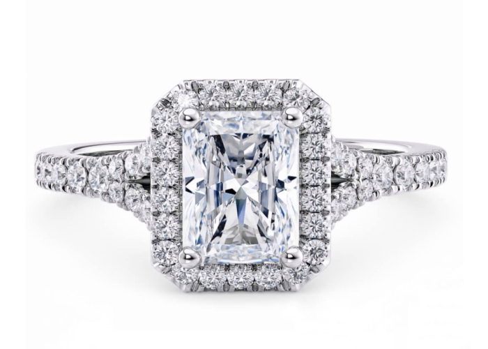 Acest inel de logodnă cu diamant de laborator forma radianta impresionează printr-un design sofisticat tip halo, creat pentru a evidenția strălucirea pietrei centrale și pentru a oferi un aspect luxuriant și modern. Piesa este realizată cu atenție la detalii și este ideală pentru o cerere în căsătorie memorabilă.