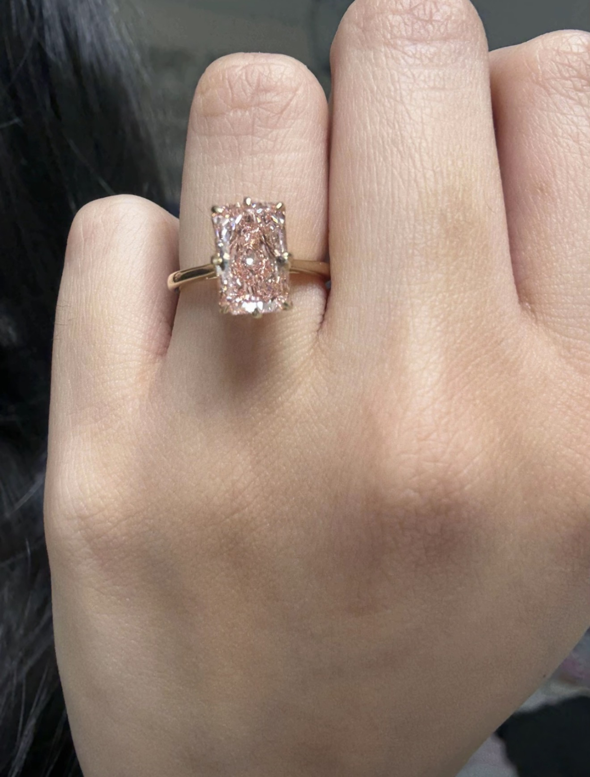 Acest inel de logodnă cu diamant de laborator formă radiantă îmbină strălucirea intensă cu un design modern și rafinat. Diamantul central este personalizabil între 1 și 4 carate, fiind ales în culoare E și claritate VS1, pentru un echilibru perfect între lumină, claritate și eleganță.