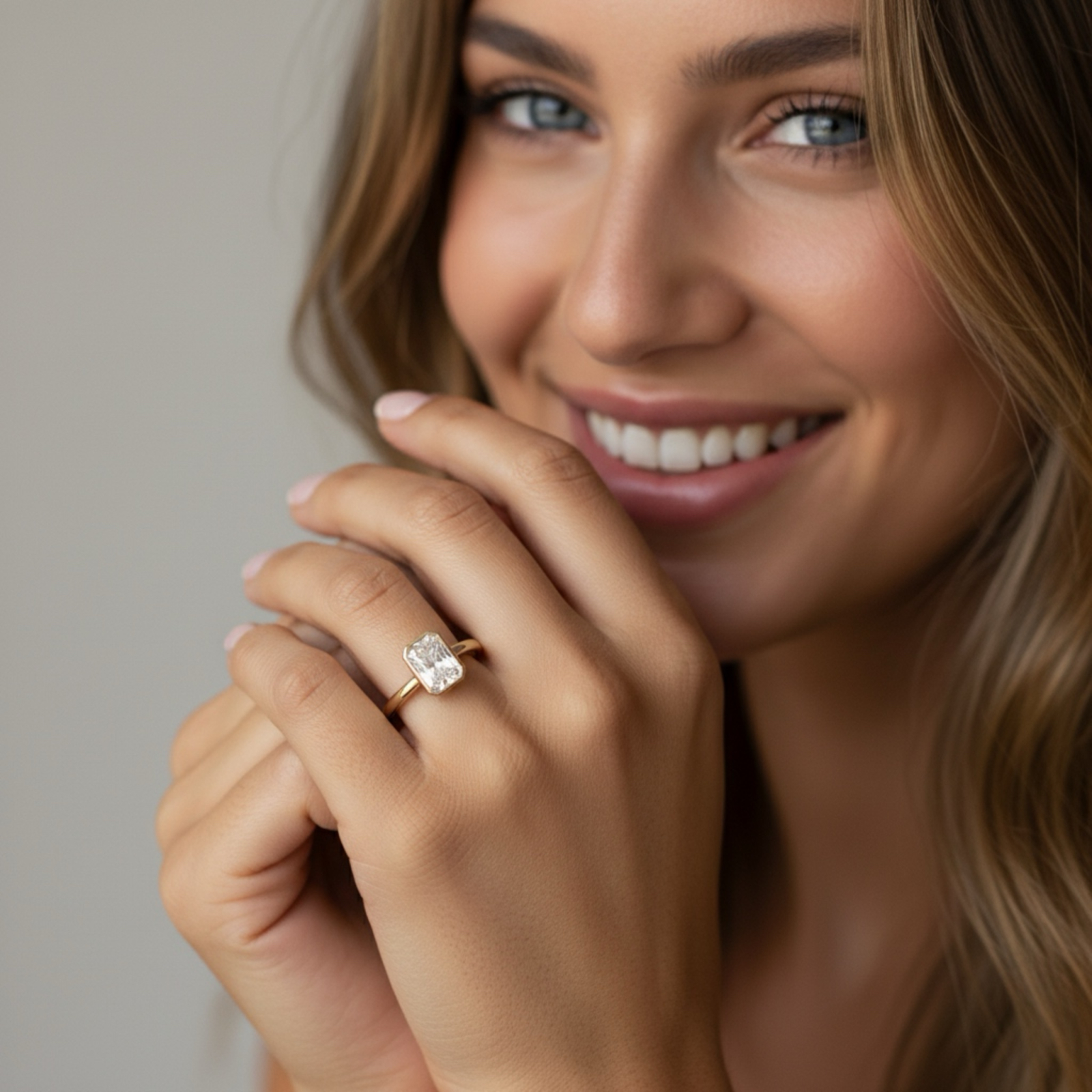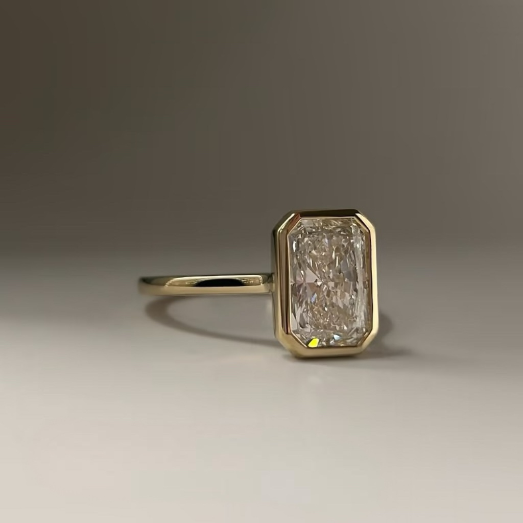 Descoperă rafinamentul modern cu acest inel statement, evidențiat de un diamant de laborator radiant cut, disponibil în variante de 1, 2 sau 3 carate. Montat într-o setare înălțată de tip bezel, acest design minimalist pune în valoare forma alungită a pietrei, maximizând jocul de lumină și strălucire.
