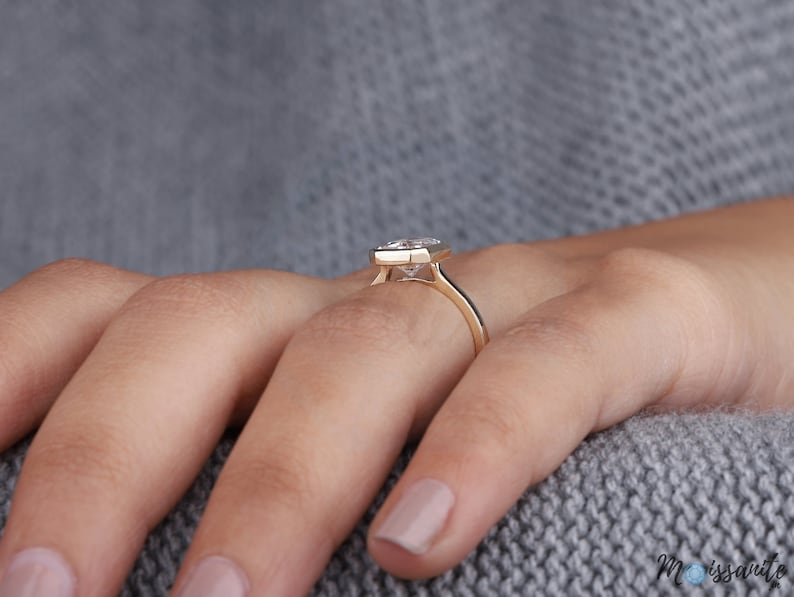 Un simbol al eleganței moderne, acest inel solitar impresionează prin designul său minimalist și rafinat. Piatra centrală este un diamant de laborator de 1, 2 sau 3 carate, tăietură emerald ce captează lumina în reflexii profunde și sofisticate. Montura bezel oferă siguranță, stil și o estetică arhitecturală, în timp ce banda simplă, din argint, aur alb/galben/rose sau platină, completează perfect acest design vintage minimalist.