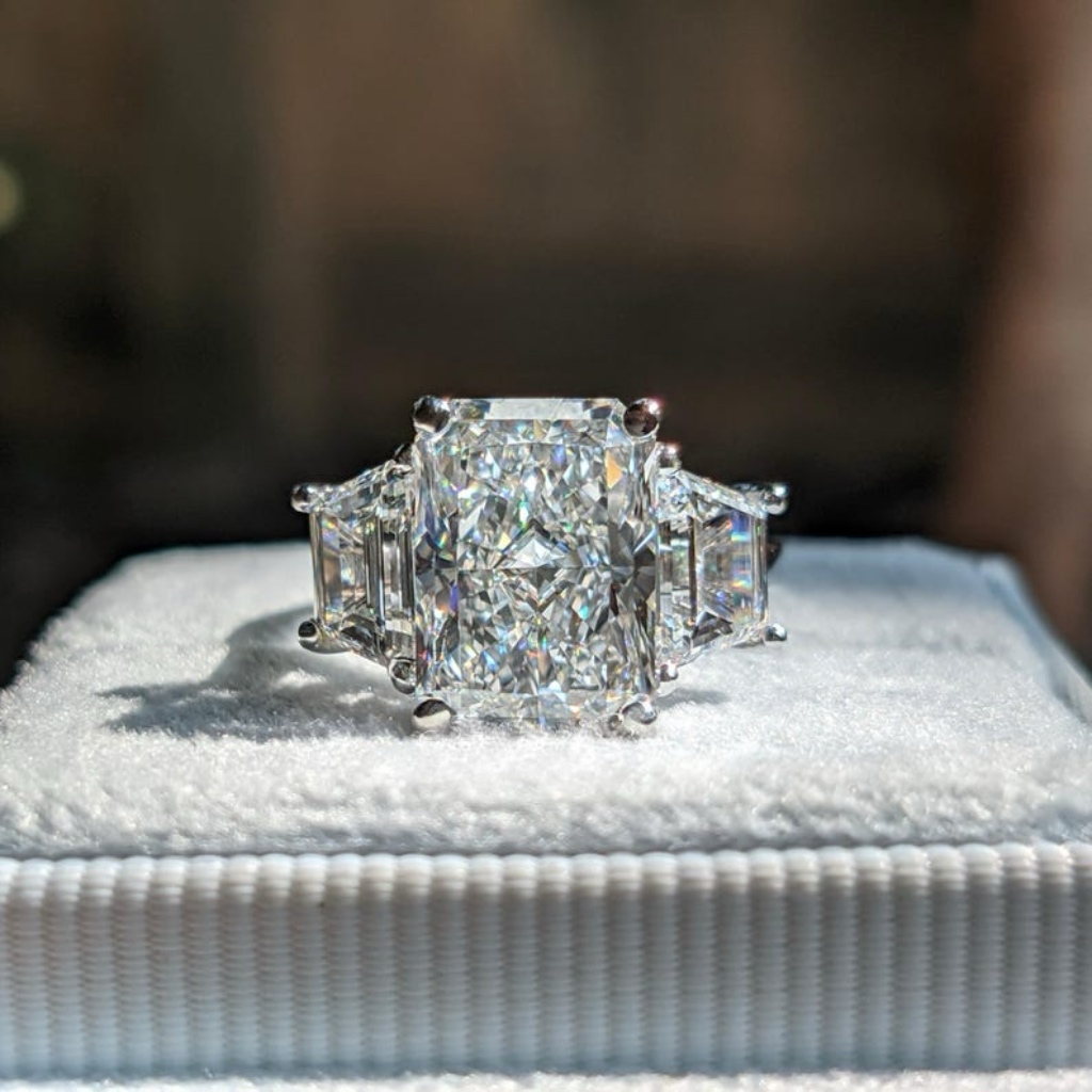 O capodoperă a eleganței moderne, acest inel cu diamante de laborator impresionează prin echilibrul perfect între proporții, claritate și lumină. Piatra centrală, tăietură Radiant, este disponibilă în variante de 1 ct, 2 ct sau 3 ct, capturând fiecare rază de lumină cu o strălucire intensă și un foc spectaculos.