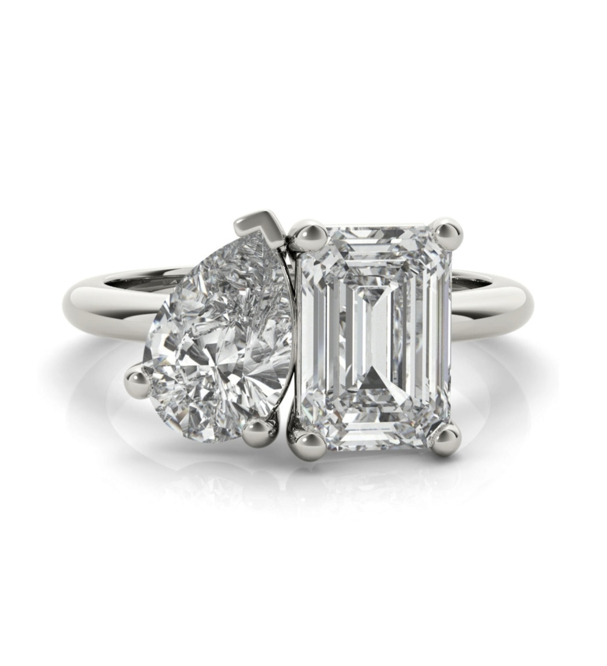 Această combinație unică simbolizează echilibrul între sensibilitate și forță. Tăietura pară oferă o strălucire romantică și delicată, iar tăietura emerald adaugă profunzime și eleganță geometrică. Împreună creează un design contemporan și perfect echilibrat.