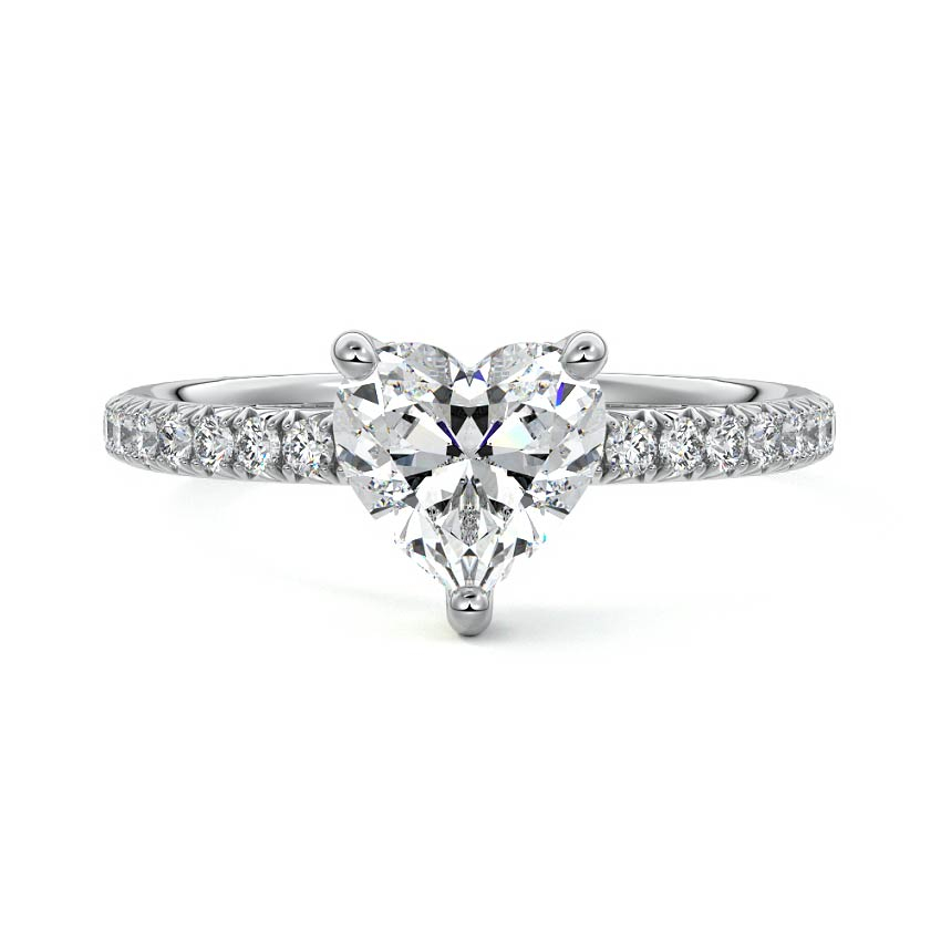 - Piatra centrală: Moissanite de 1 carat, tăietură inimă (Heart), culoare D, claritate VVS