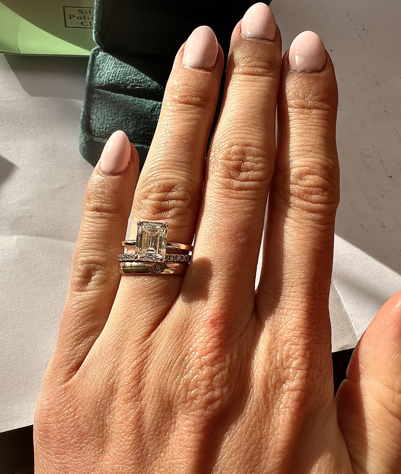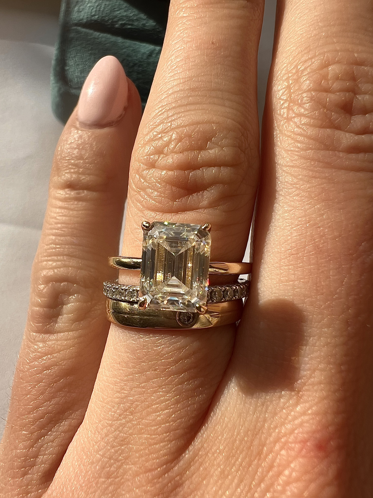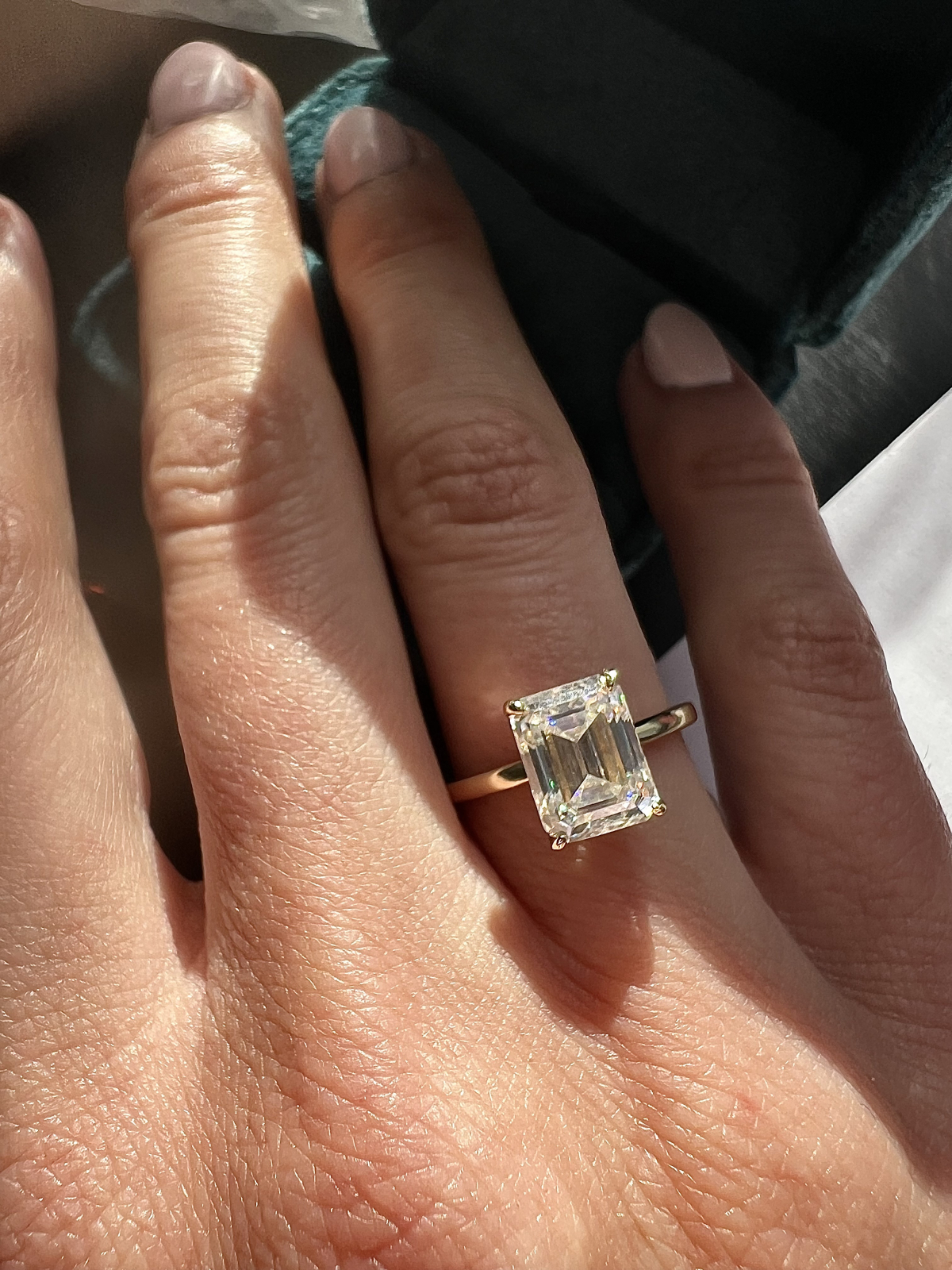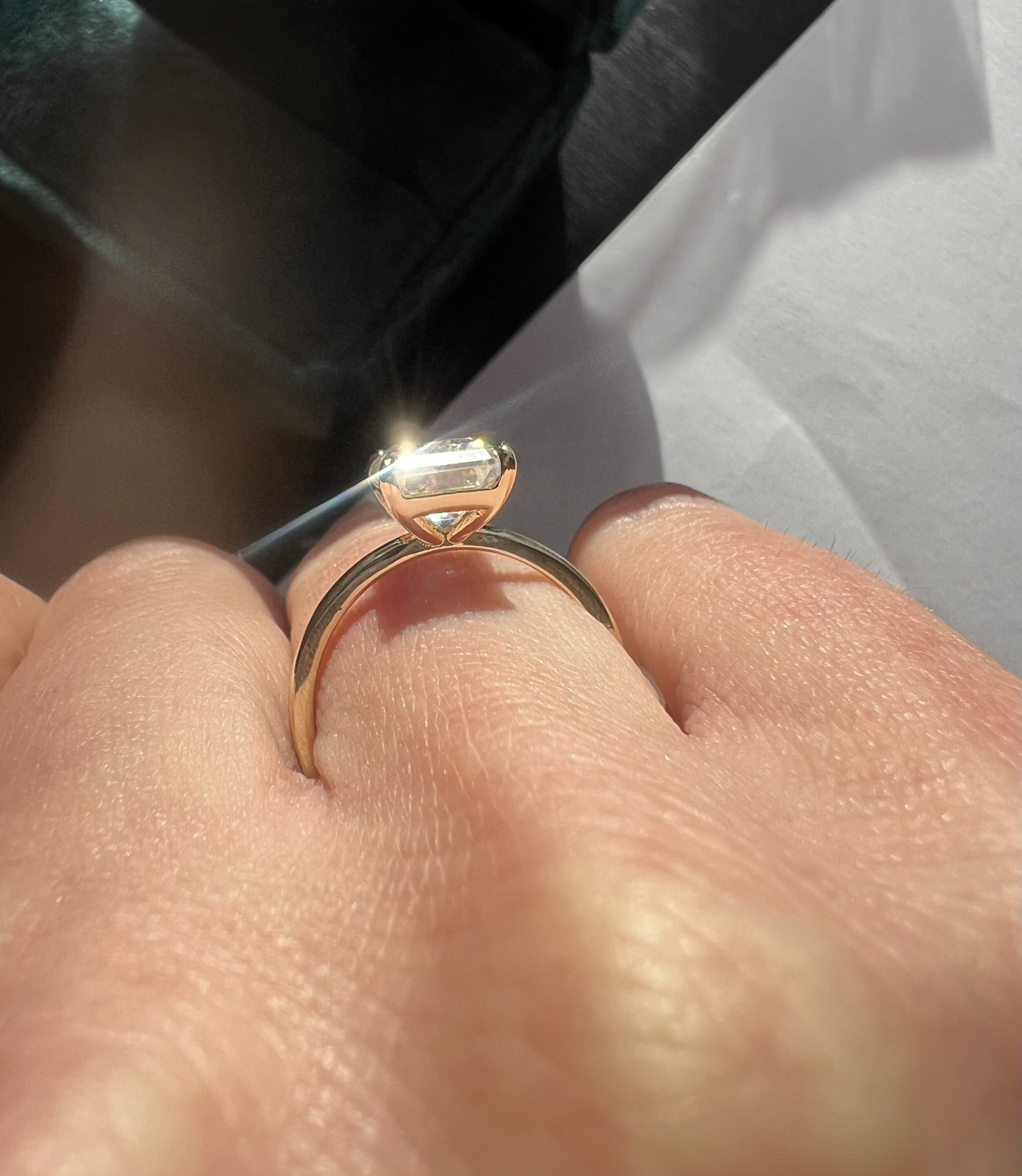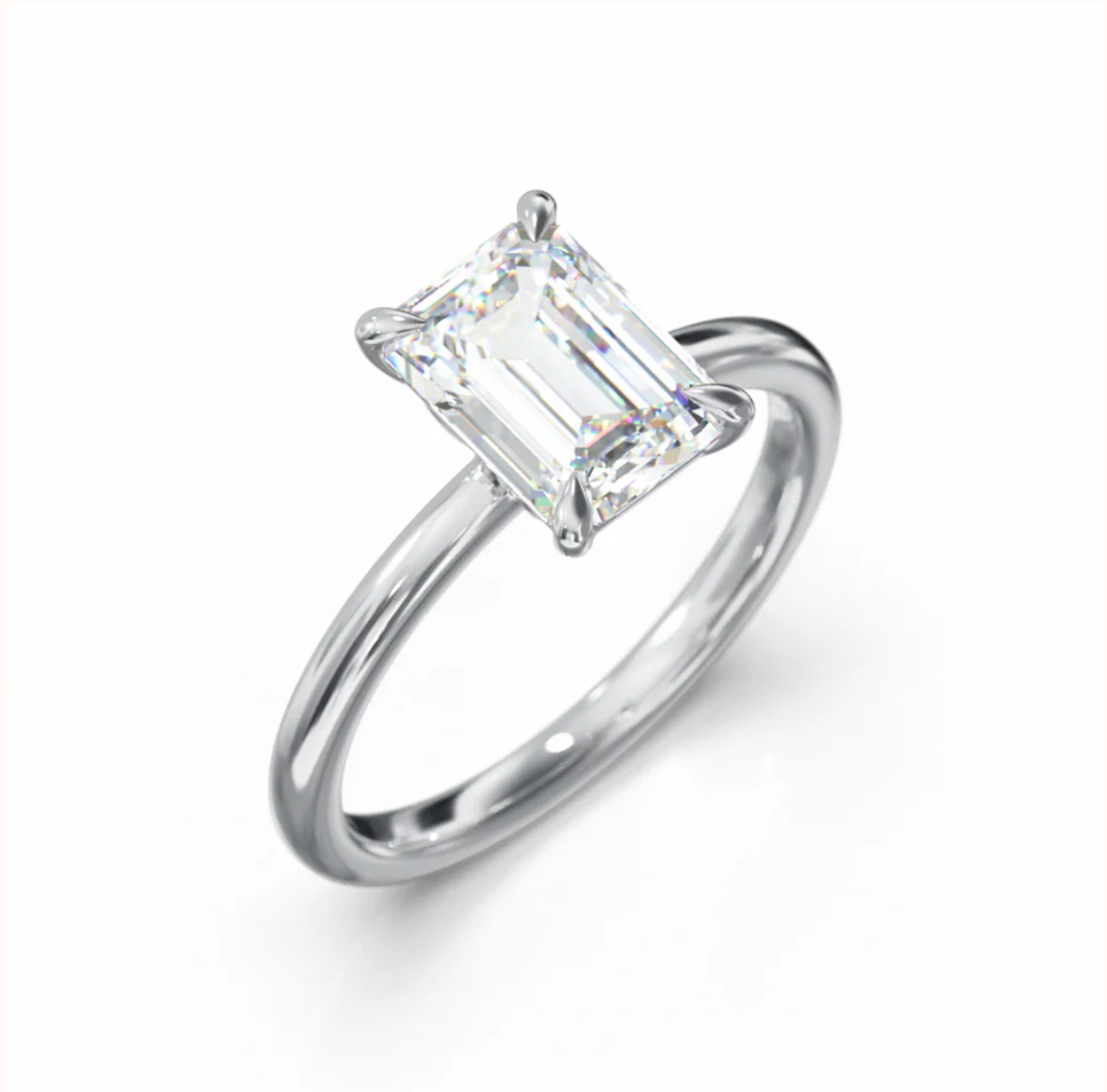 Alegeti o eleganță atemporală cu inelul Moissanite Emerald Elegance de 3CT. Acest inel rafinat are un moissanit captivant de 3 carate de culoare D, 9x7 mm, tăiată în forma de smarald, care radiază o strălucire ce rivalizează cu cele mai fine diamante. Realizat din argint sterling de lux 925, acest inel este o dovadă a gustului rafinat și a iubirii de durată.