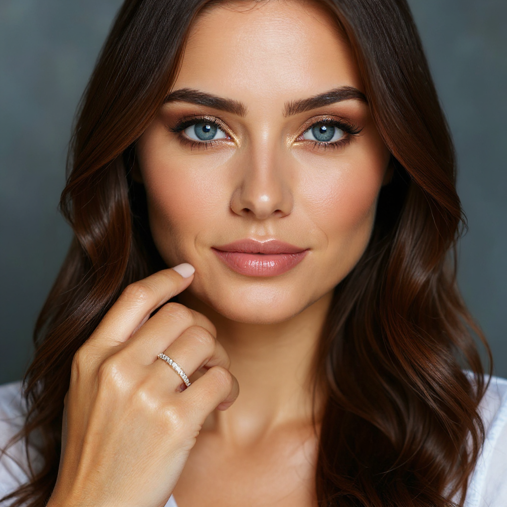 Moissanite de 0,03 carate x 32 (+/- in functie de marimea inelului).