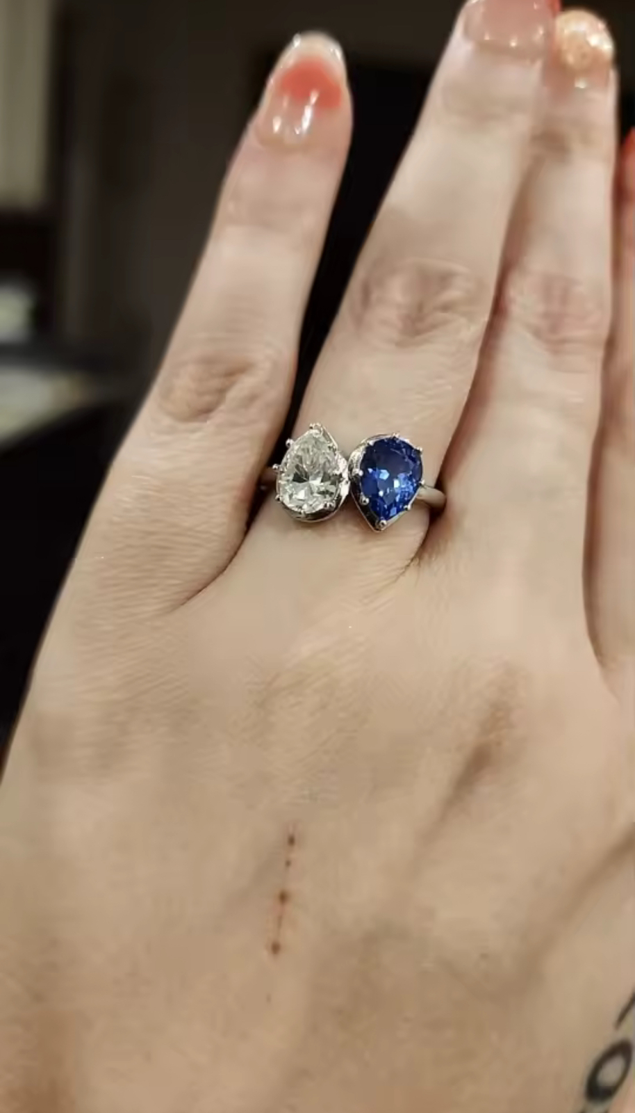 Un omagiu adus iubirii eterne, acest inel „Toi et Moi” este inspirat de legendarul inel de logodnă oferit de Napoleon Joséphinei — un simbol al pasiunii și devotamentului fără sfârșit. Designul său evocator reunește două pietre prețioase ce se completează perfect: un safir albastru de laborator și un moissanit de culoare D, claritate VVS, în tăieturi elegante care se privesc, asemenea unui cuplu unit prin destin.