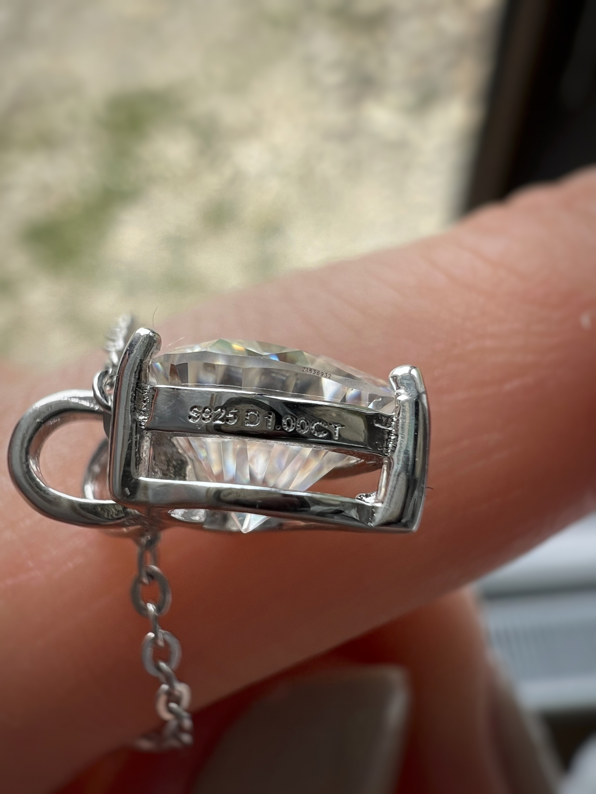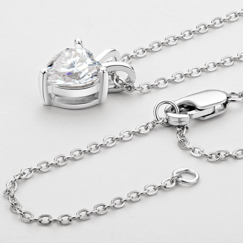 Pandantivul este încrustat cu un moissanite de 1 carat, tăietură inimă (heart) – una dintre cele mai expresive și romantice forme, ce reflectă lumina cu o strălucire intensă și armonioasă. Piatra are culoare D și claritate VVS, oferind un luciu excepțional, comparabil cu cel al diamantului.