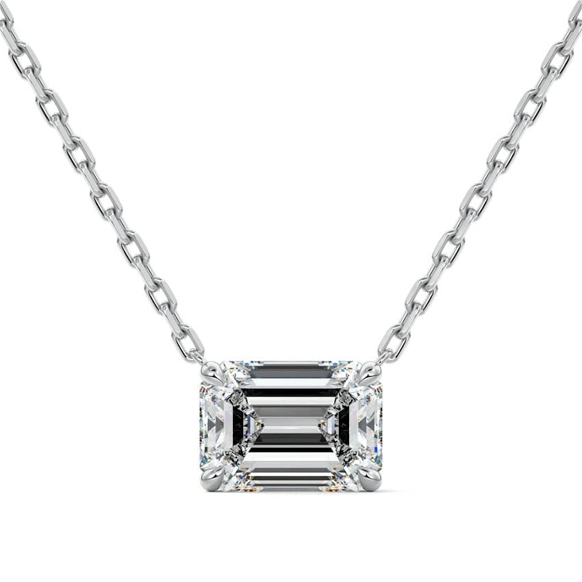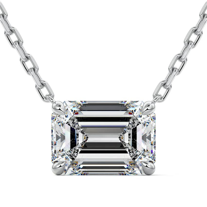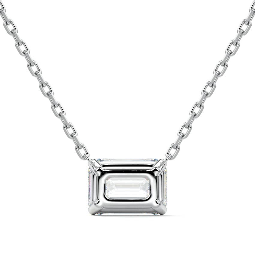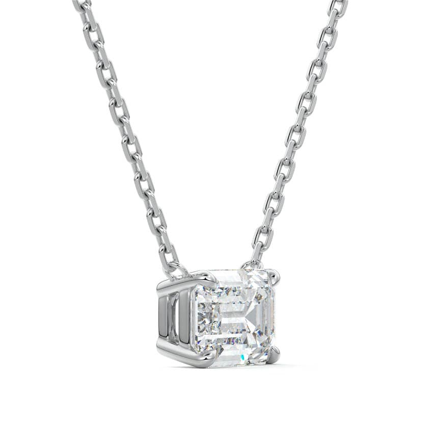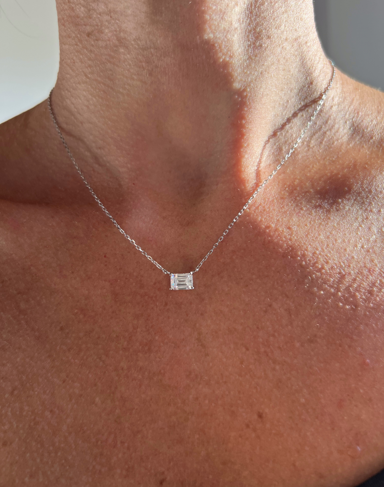 Rafinat și elegant, acest colier din argint placat cu platină este în centrul atenției prin pandantivul său cu moissanite tăietură emerald de 1 carat – o piatră impresionantă, cu o claritate excepțională VVS și culoare D, ce reflectă lumina într-un mod sofisticat. Tăietura emerald scoate în evidență transparența și eleganța pietrei, oferind un look modern.