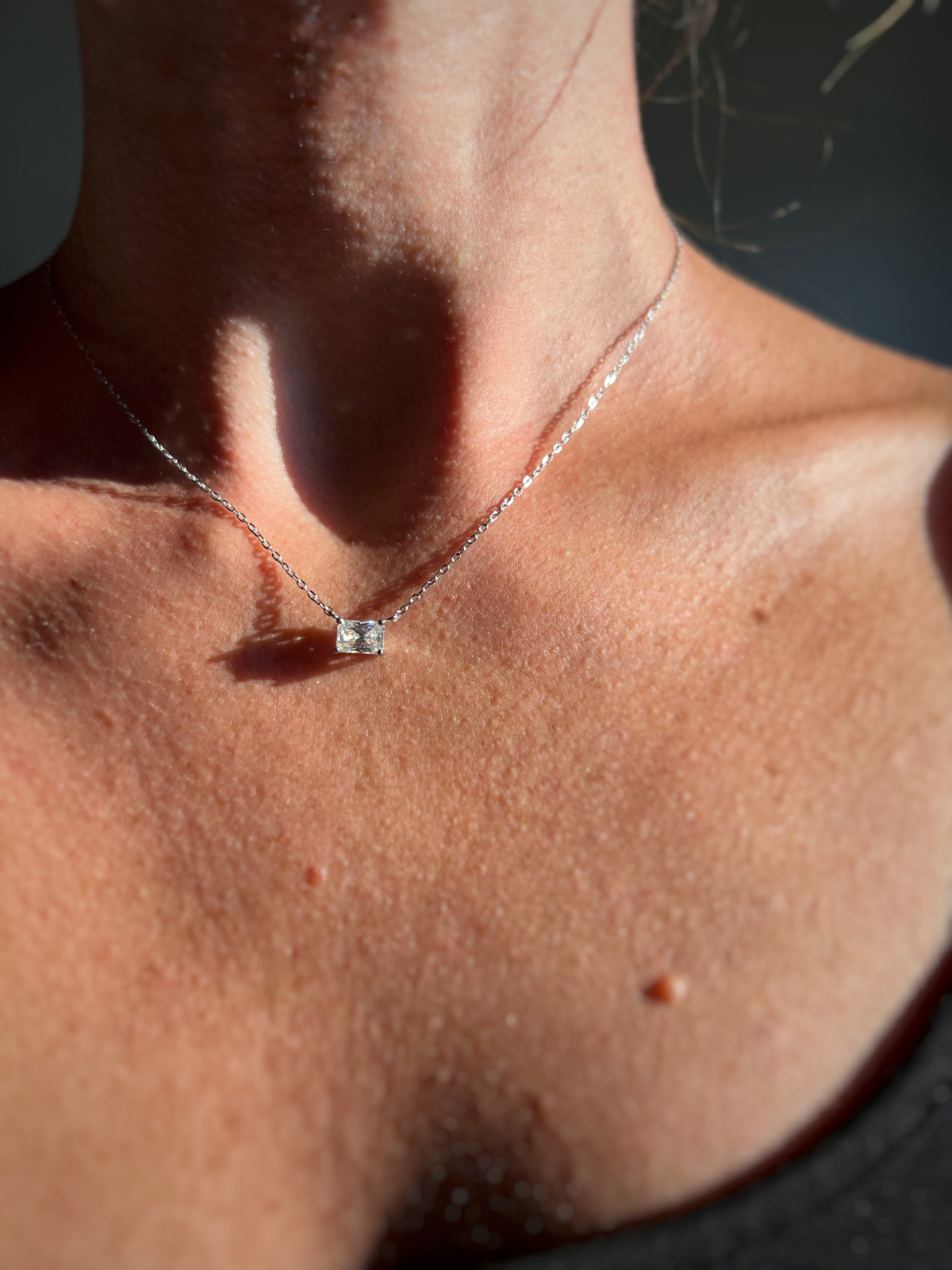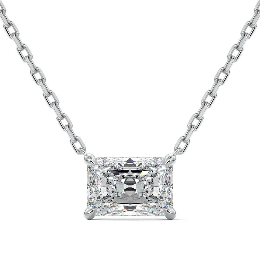 Strălucire intensă într-un design minimalist – acest colier din argint 925 placat cu platină este pus în valoare de un pandantiv cu moissanite de 1 carat, tăietură radiantă. Recunoscută pentru efectul său spectaculos de reflexie a luminii, tăietura radiantă combină eleganța clasică cu un strop de modern. Culoarea D și claritatea VVS conferă pietrei o puritate deosebită și un aspect luxos.