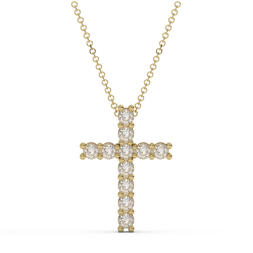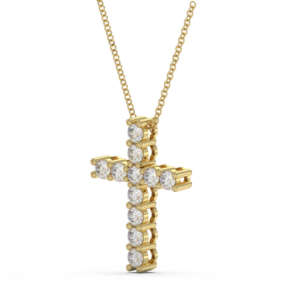 Pandantiv cruce insotit de lant de 45 de cm, din aur de 10K, 14K sau 18K cu moissanite de 1 carat. .