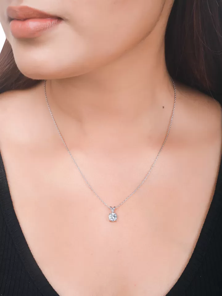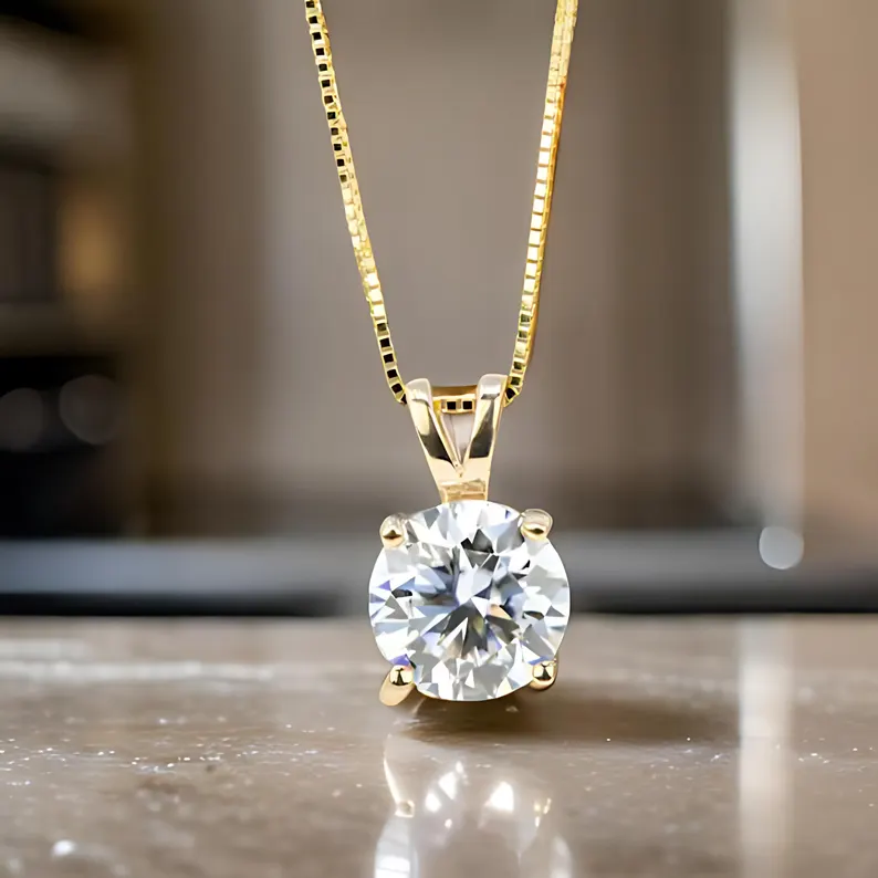 Bucurati-va de fiecare moment cu colierul nostru minimalist cu pandantiv rotund cu moissanit. Realizat din aur de 10K, 14K sau 18K, această piesă este esența luxului discret.