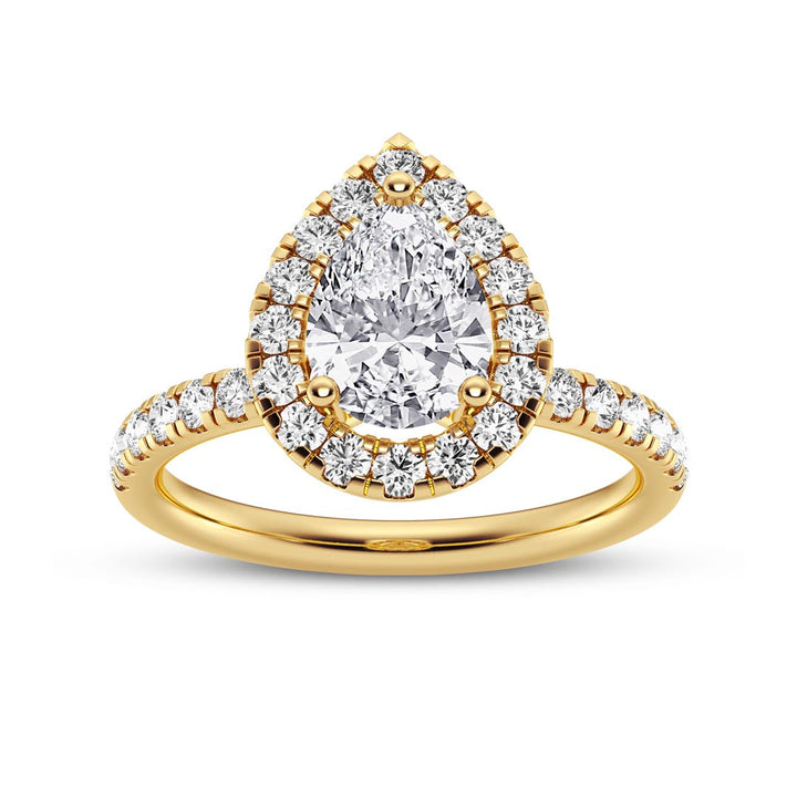 Forma de pară este o tăietură de diamant unică și hibridă care combină strălucirea și stilul de design atât al diamantului rotund strălucitor, cât și al diamantului marquise, rezultând o formă cu un singur punct și un capăt rotunjit.