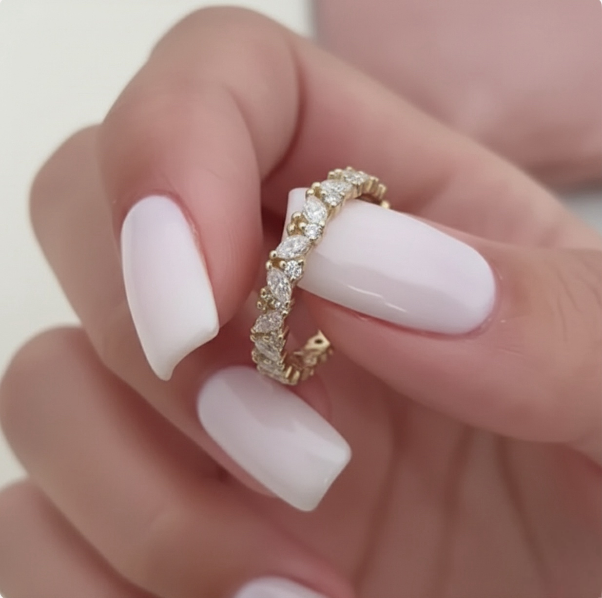 - Tăieturi: Marquise 2x4 mm și Round 2,1 mm pentru un design unic și plin de rafinament