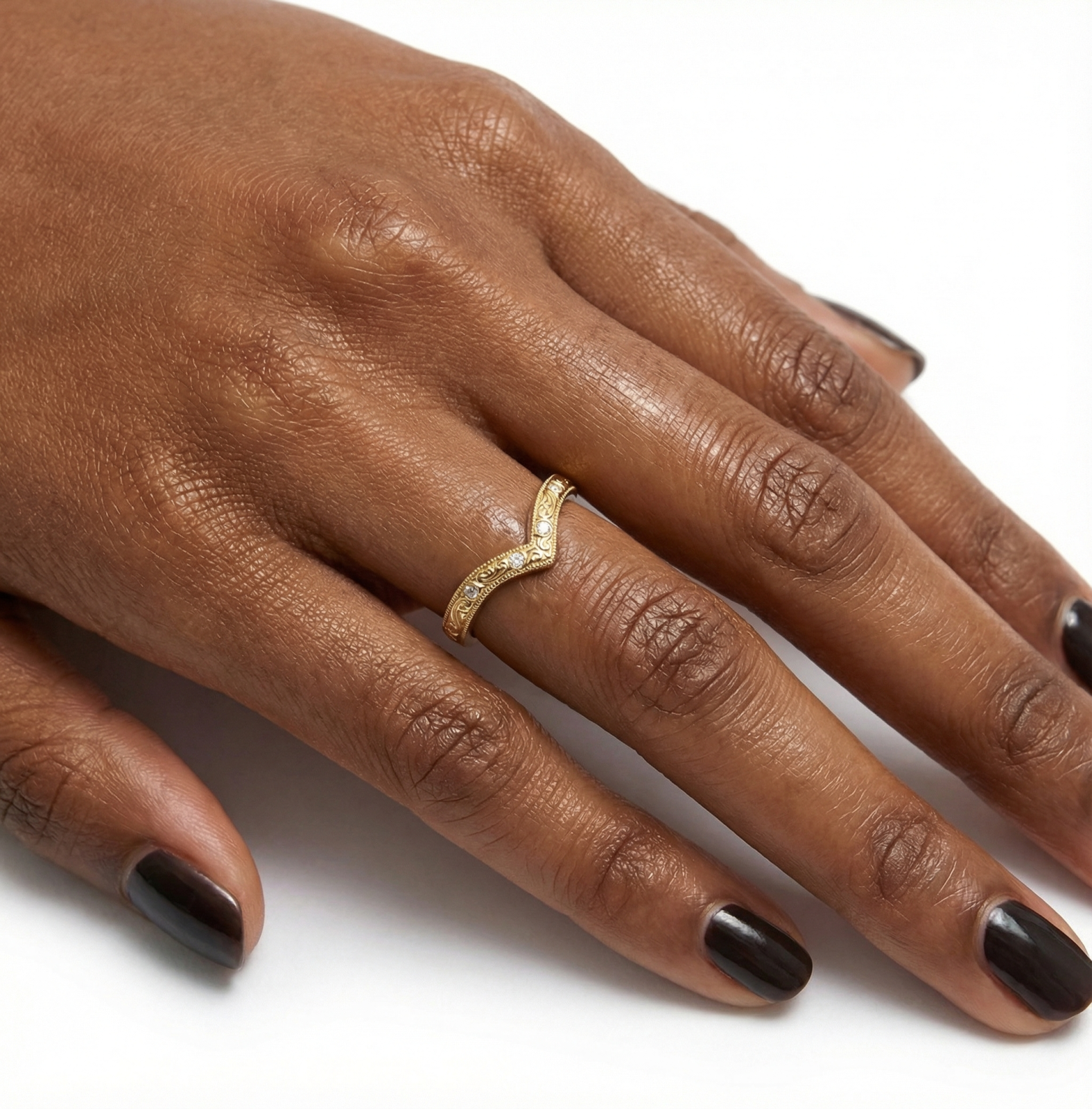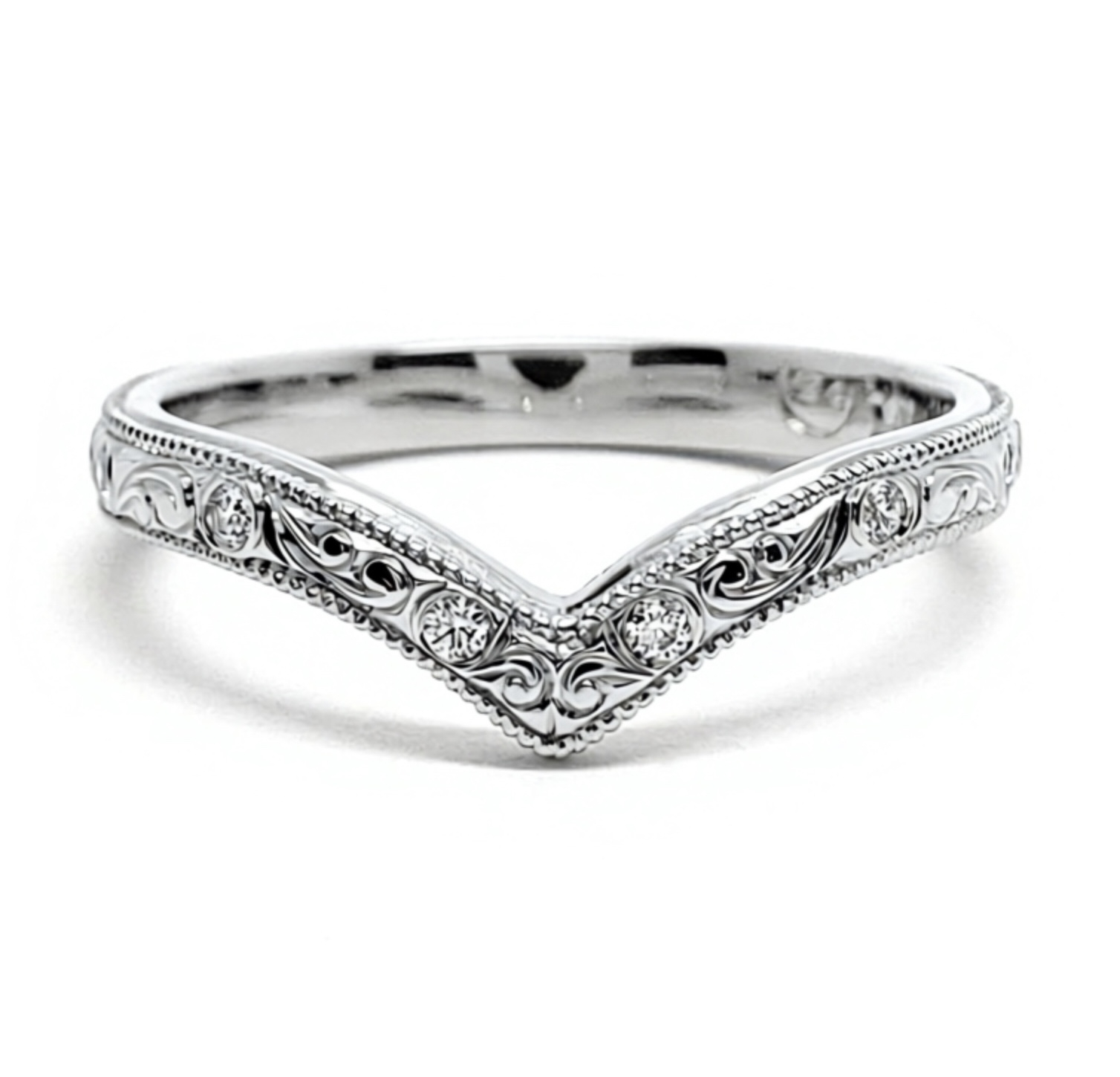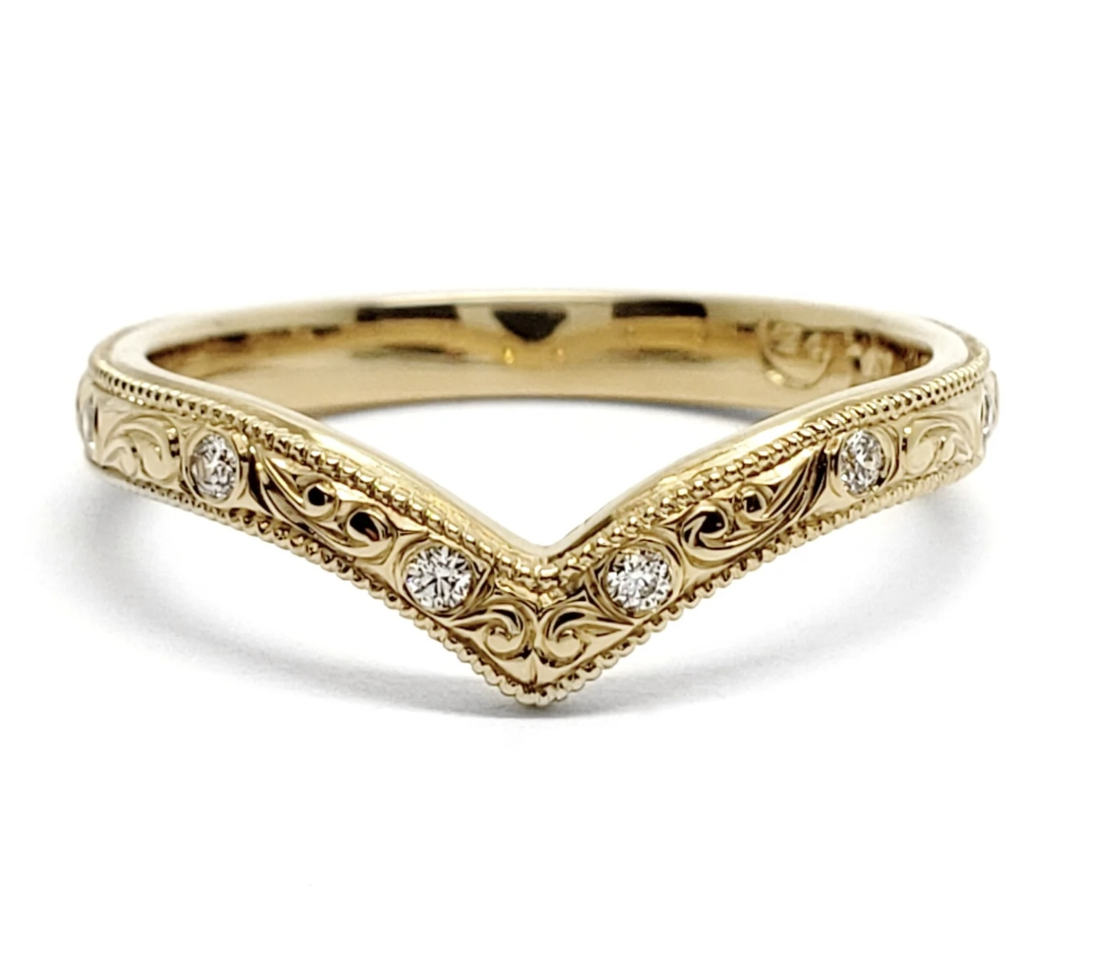 Da. Designul vintage și forma ușor în V îl fac potrivit ca verighetă sau ca inel complementar unui inel de logodnă.