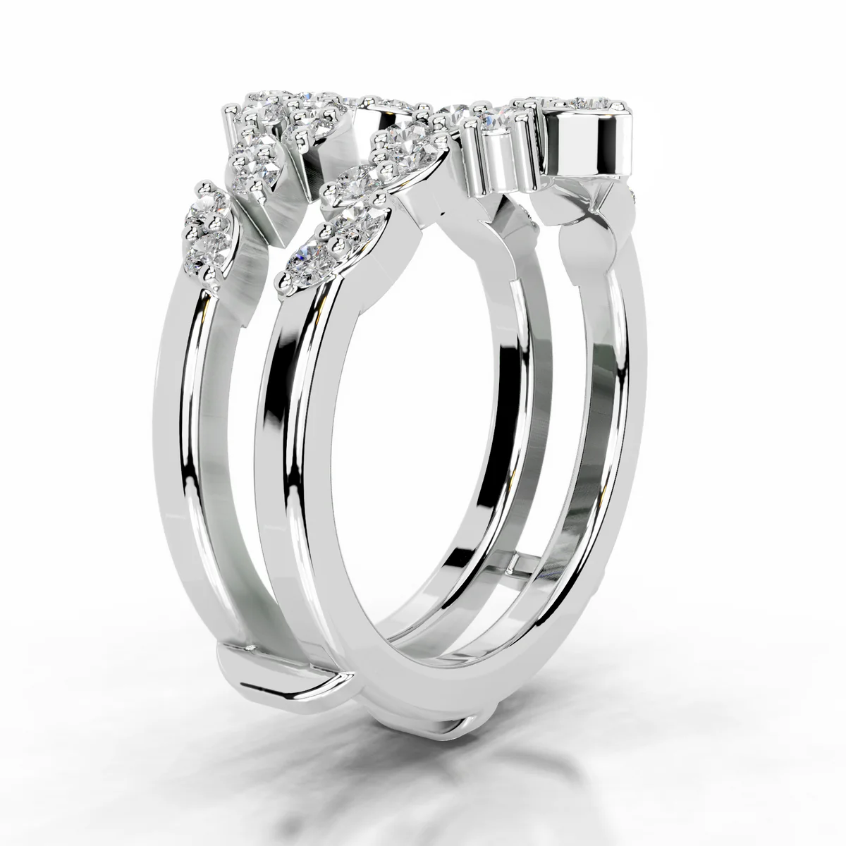 Acest inel are o setare de tip coronă regală (crown-style setting), cu un design elaborat și elegant, o adevărată bijuterie statement, perfectă pentru ocazii speciale sau ca verighetă. Realizat din aur sau platina, inelul impresionează prin îmbinarea pietrelor moissanite de culoare D si claritate VVS, oferind o strălucire sofisticată și un joc de forme elegant. Designul său tip coroniță este alcătuit din două benzi paralele, ornate cu pietre așezate cu precizie pentru un efect vizual luxos și rafinat.